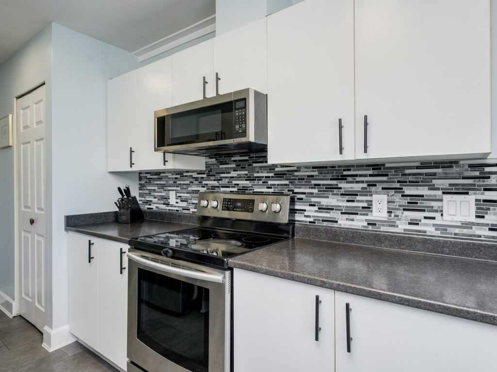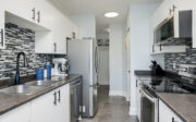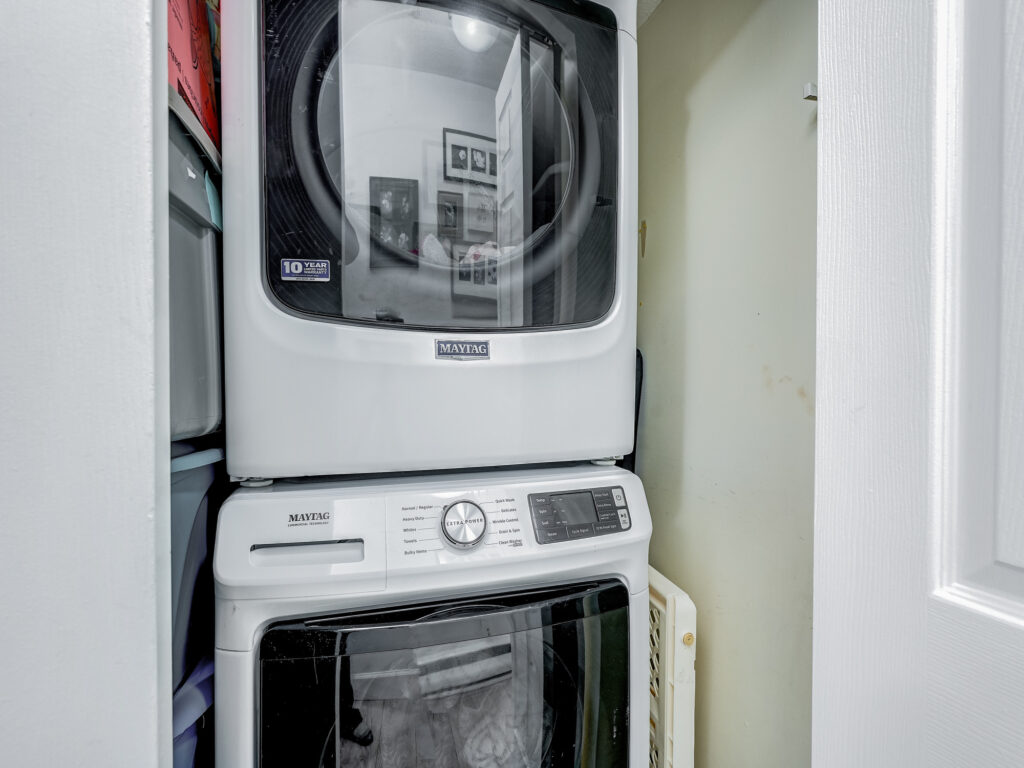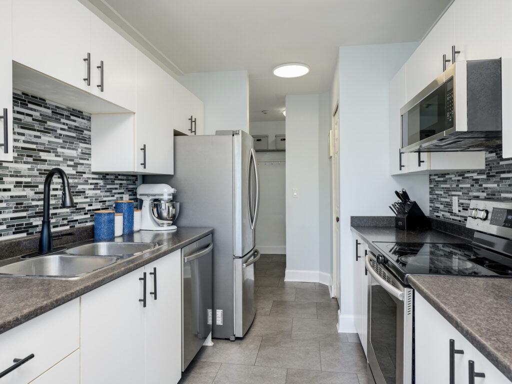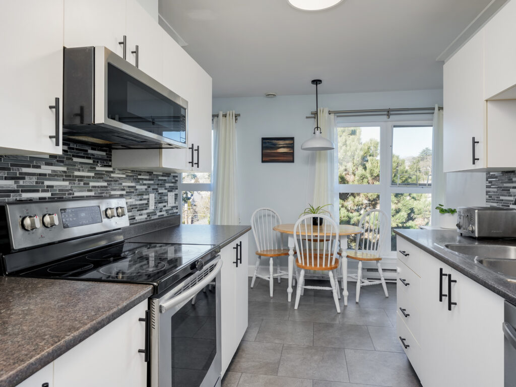 The modern kitchen features newer stainless steel appliances, while in-suite laundry with a newer washer/dryer adds everyday convenience.
