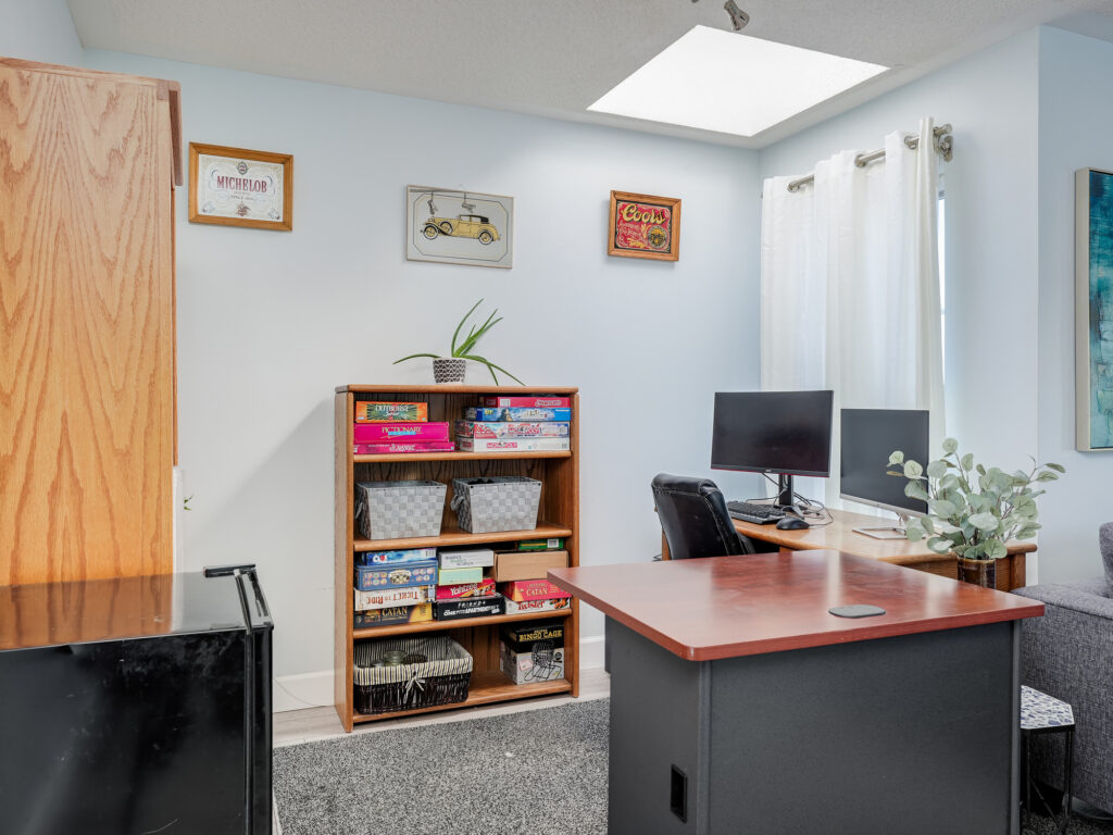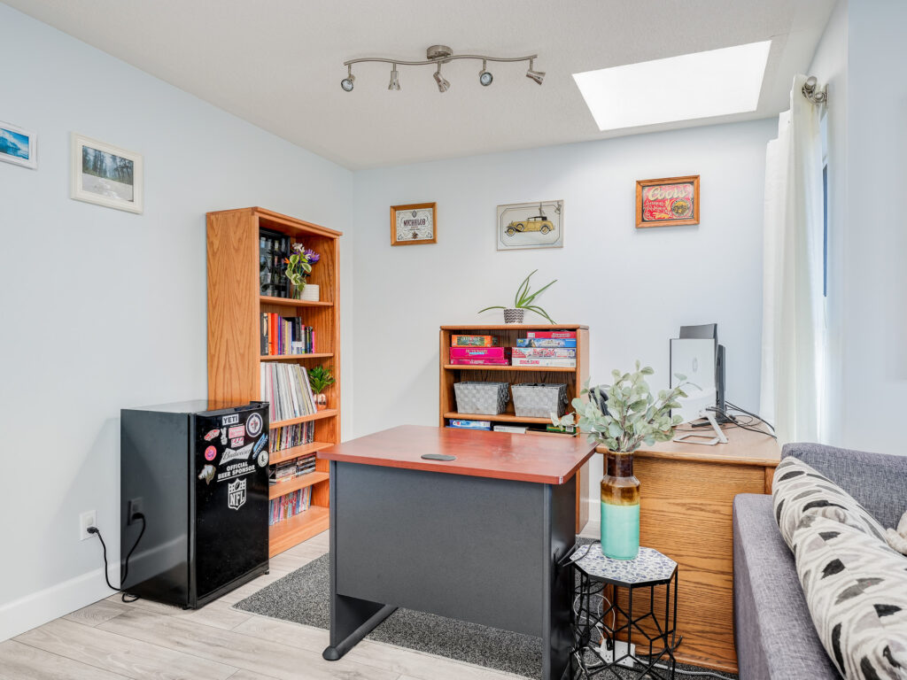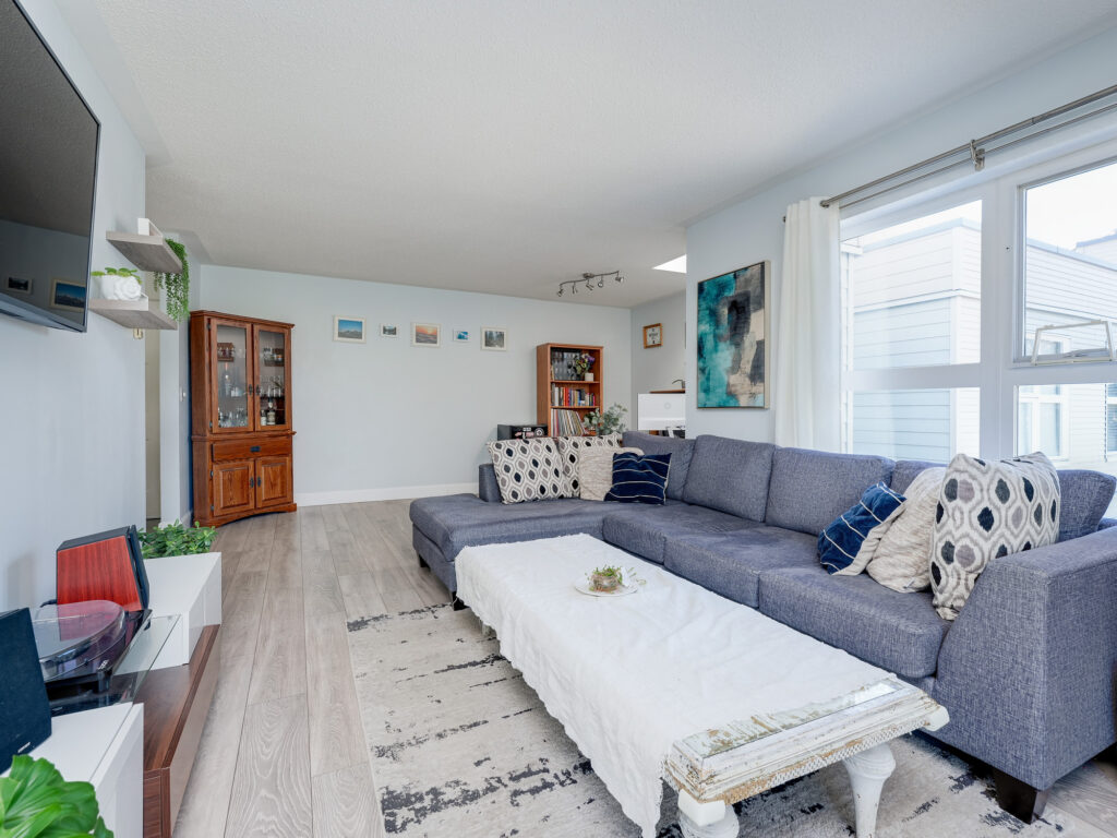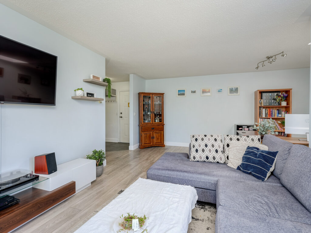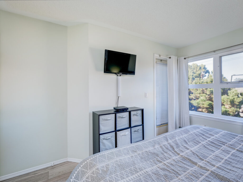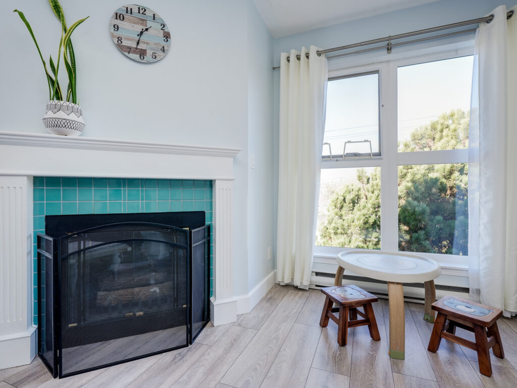 Flooded with natural light, this top-floor, west- and north-facing corner suite offers spacious living with sweeping views. The bright, open floor plan is anchored by a cozy gas fireplace in the living room, with skylights that bring warmth and light into the main living areas.
